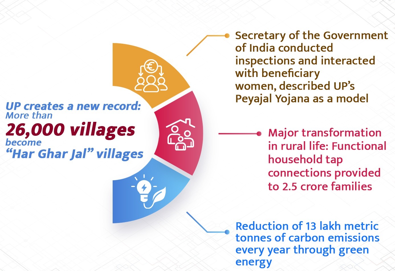 उत्तर प्रदेश ने जल जीवन मिशन के अंतर्गत ग्रामीण पेयजल व्यवस्था में नया रिकॉर्ड बनाया है। प्रदेश के 26,564 गांवों को “हर घर जल” प्रमाणित किया जा चुका है, जबकि लगभग ढाई करोड़ ग्रामीण परिवारों को क्रियाशील गृह नल संयोजन उपलब्ध कराया गया है।