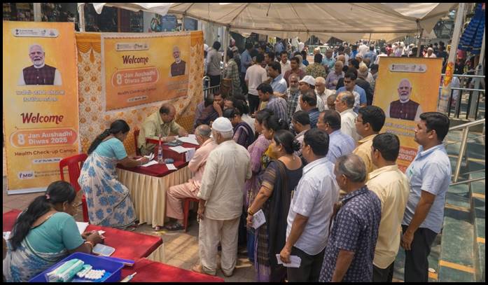 जनऔषधि सप्ताह 2026 के चौथे दिन, रसायन एवं उर्वरक मंत्रालय के औषधि विभाग के अंतर्गत भारतीय औषधि एवं चिकित्सा उपकरण ब्यूरो (पीएमबीआई) की ओर से विभिन्न राज्यों और केंद्र शासित प्रदेशों में स्वास्थ्य जांच शिविरों का आयोजन किया गया। यह आयोजन 7 मार्च को मनाए जाने वाले 8वें जनऔषधि दिवस से पहले 1 से 5 मार्च 2026 तक चलाए जा रहे राष्ट्रव्यापी जागरूकता अभियान का हिस्सा था। होली के त्योहार के बीच भी इन स्वास्थ्य शिविरों में नागरिकों ने उत्साहपूर्वक भाग लिया। निःशुल्क चिकित्सा परामर्श, रक्तचाप, रक्त शर्करा और थायरॉइड परीक्षण जैसी ऑन-साइट निदान सेवाएं, बाल चिकित्सा देखभाल और दीर्घकालिक बीमारियों के लिए परामर्श प्रदान किए गए। जनऔषधि औषधियों और सुविधा सैनिटरी पैड का वितरण भी किया गया, साथ ही किफायती और गुणवत्तापूर्ण जेनेरिक दवाओं के लाभों को उजागर करने वाले जागरूकता सत्र आयोजित किए गए।
